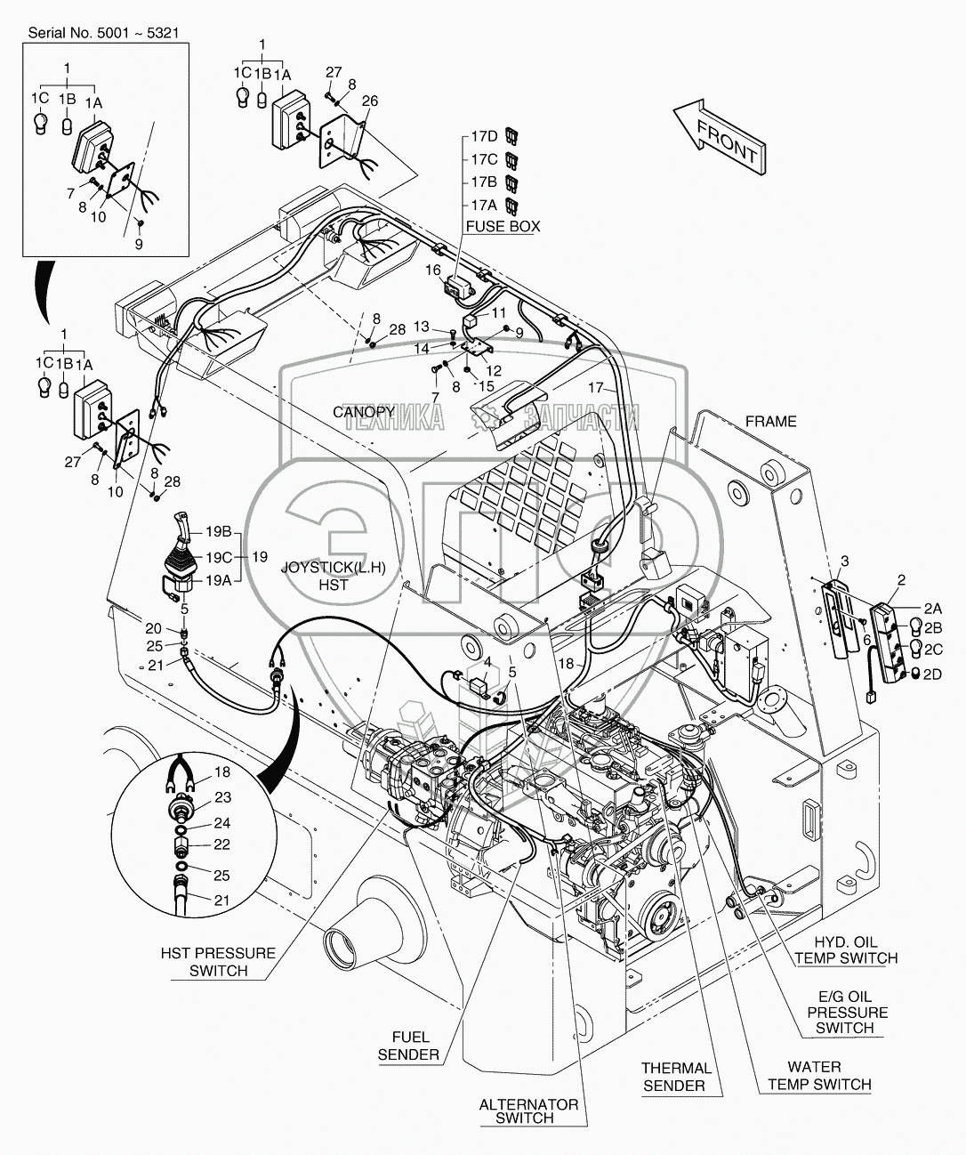 Каталог запасных частей к технике: Doosan Мини-погрузчик 450 Plus. 6600 Дополнительное освещение