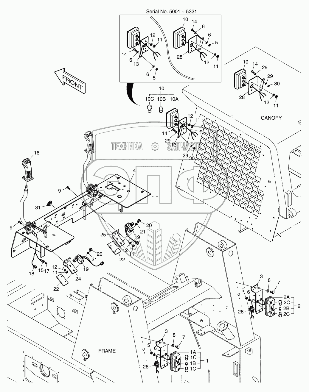 Каталог запасных частей к технике: Doosan Мини-погрузчик 450 Plus. 6680 Дополнительное освещение