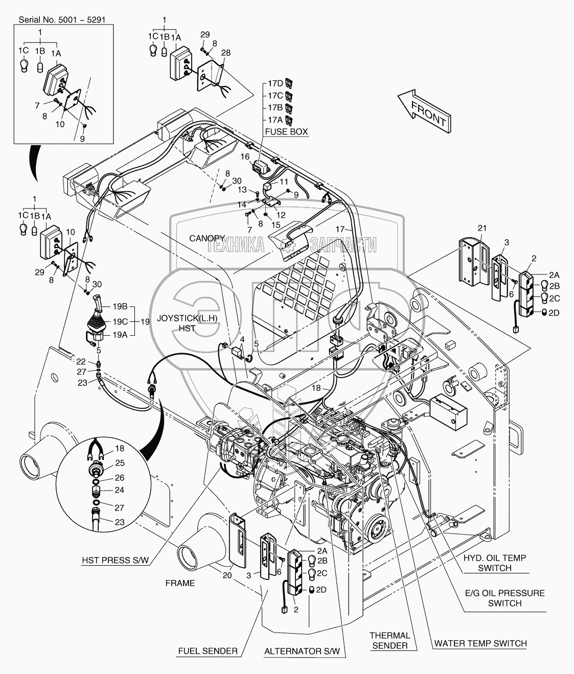 Каталог запасных частей к технике: Doosan Мини-погрузчик 460 Plus. 6610 Дополнительное освещение