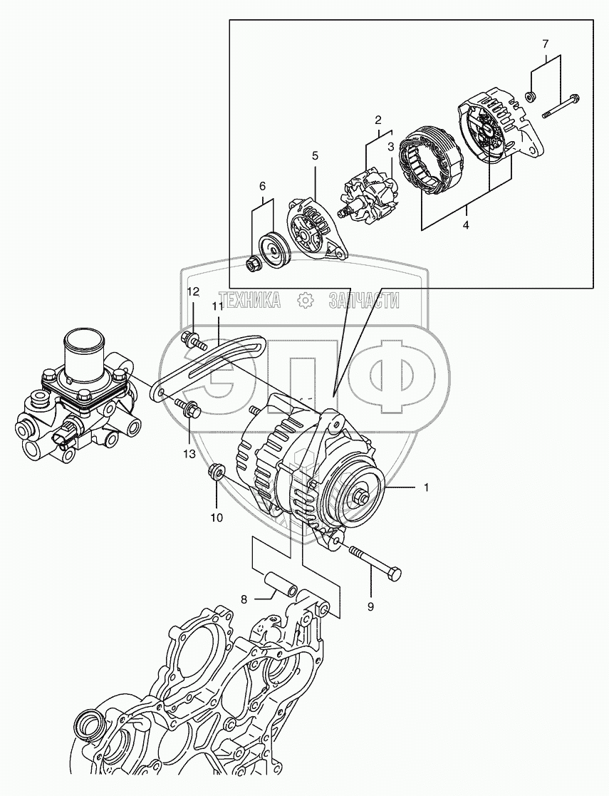 Каталог запасных частей к технике: Doosan Мини-погрузчик 460 Plus (Tier3). 026 Генератор
