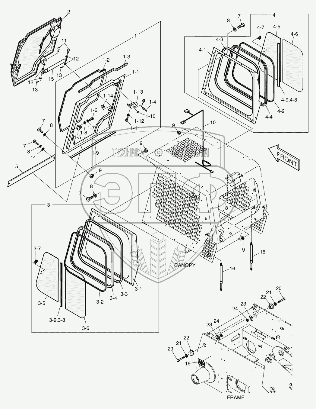 Каталог запасных частей к технике: Doosan Мини-погрузчик 460 Plus (Tier3). 6250 Установка двери