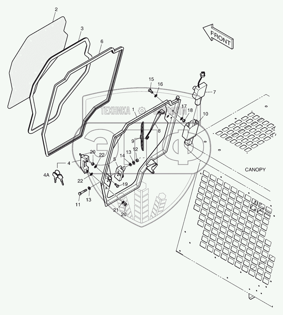 Каталог запасных частей к технике: Doosan Мини-погрузчик 460 Plus (Tier3). 6260 Передняя дверь