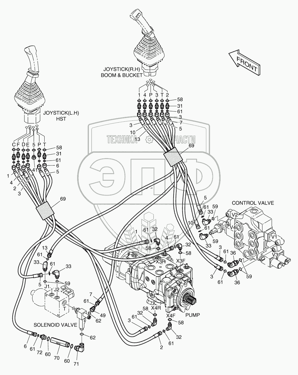 Каталог запасных частей к технике: Doosan Мини-погрузчик 460 Plus (Tier3). 6530 Трубопроводы управления