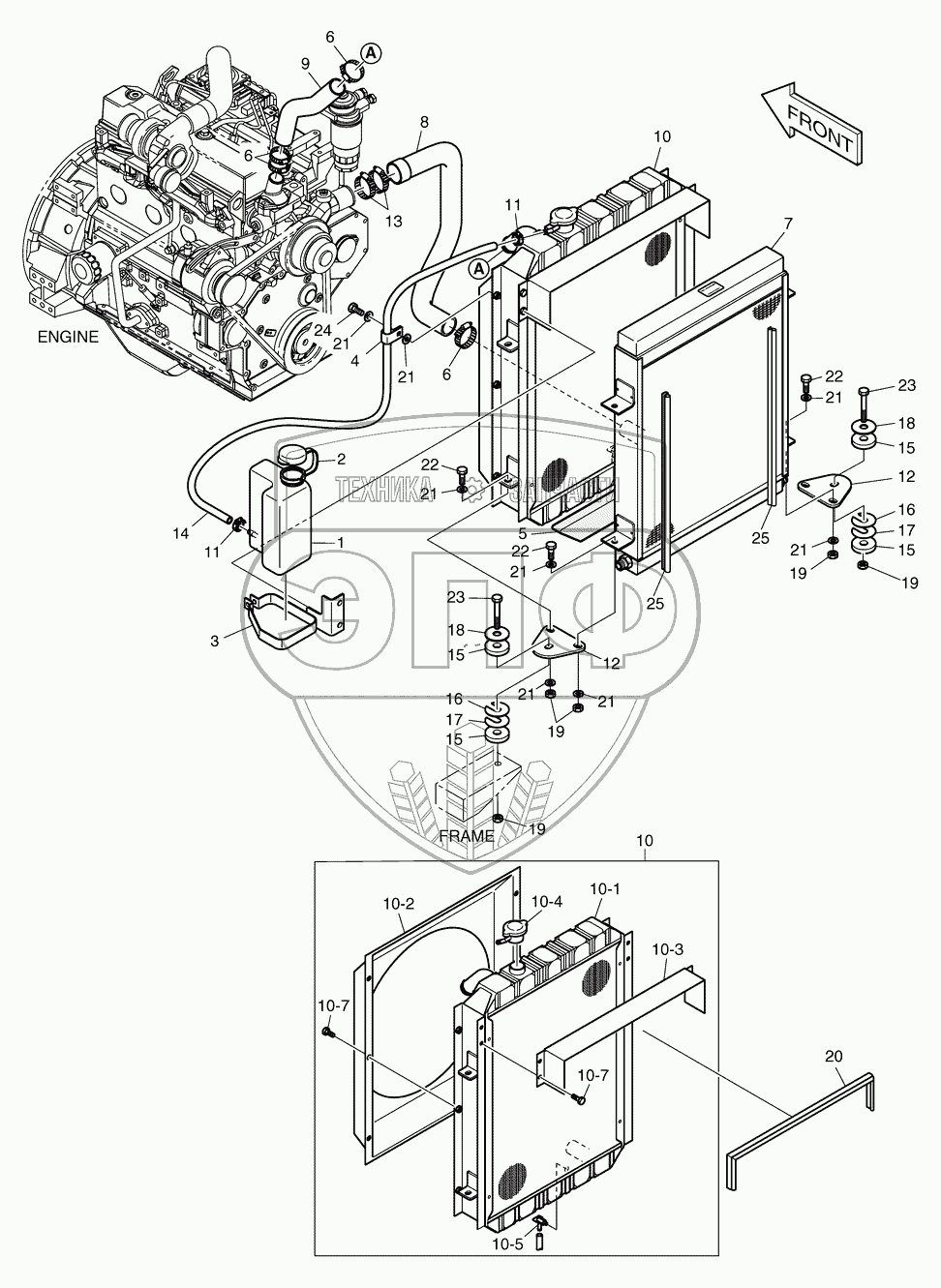Каталог запасных частей к технике: Doosan Мини-погрузчик 470 Plus. 2170 Установка радиатора