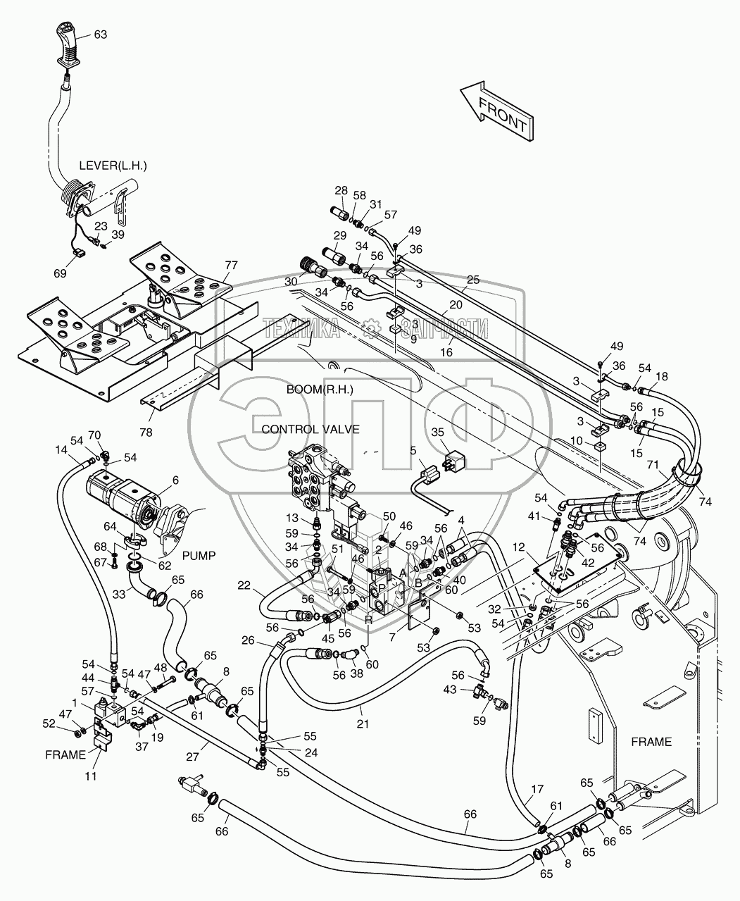 Каталог запасных частей к технике: Doosan Мини-погрузчик 470 Plus. 6190 Гидросистема