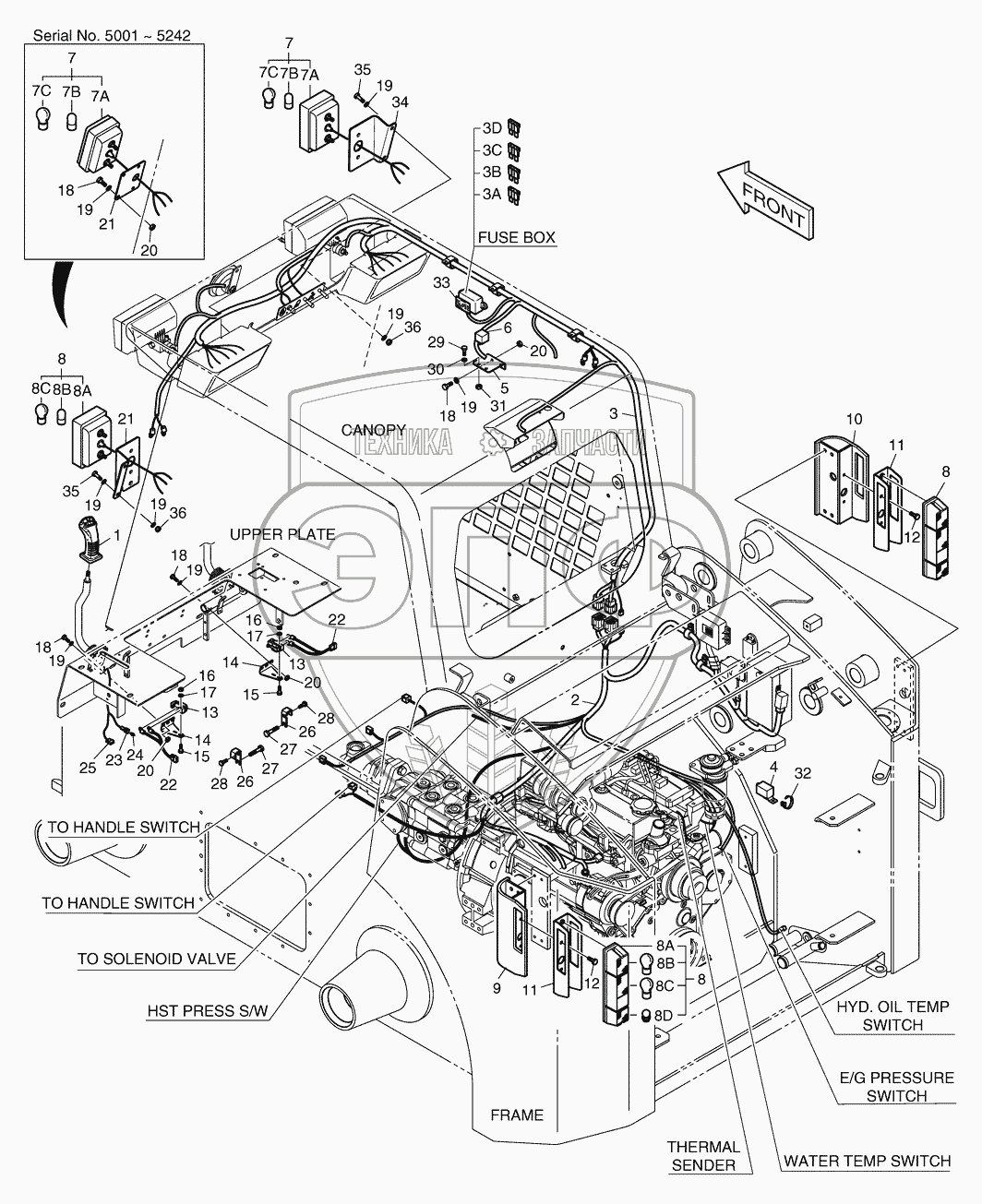 Каталог запасных частей к технике: Doosan Мини-погрузчик 470 Plus. 6210 Дополнительное освещение