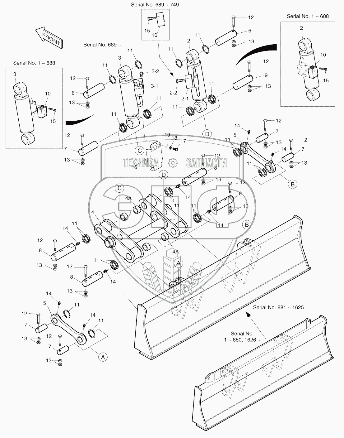 Каталог запасных частей к технике: Doosan SOLAR 130W-V(1). DOZER BLADE