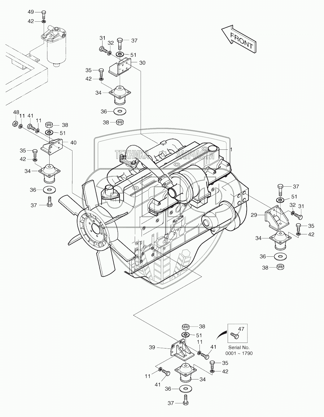 Каталог запасных частей к технике: Doosan SOLAR 130W-V(2). ENGINE MOUNTING