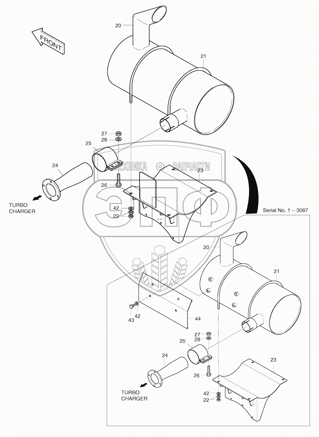 Каталог запасных частей к технике: Doosan SOLAR 130W-V(2). MUFFLER