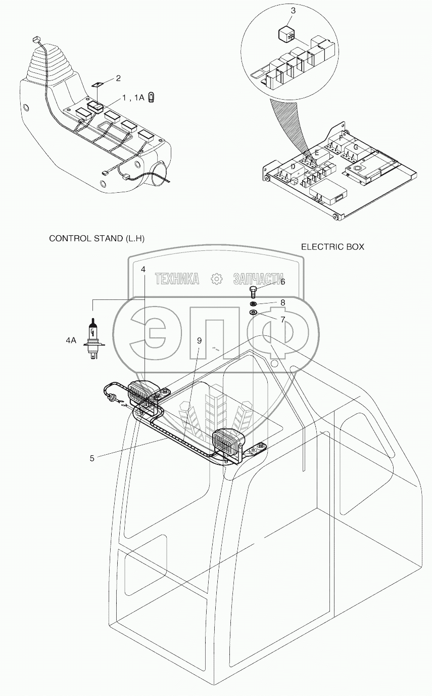 Каталог запасных частей к технике: Doosan SOLAR 140W-V. 2 - CABIN LAMP ASSY