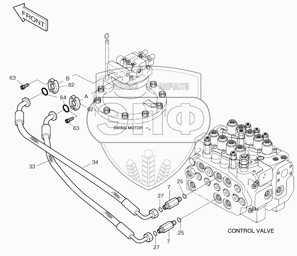Каталог запасных частей к технике: Doosan SOLAR 140W-V. MAIN PIPING (2) - SWING
