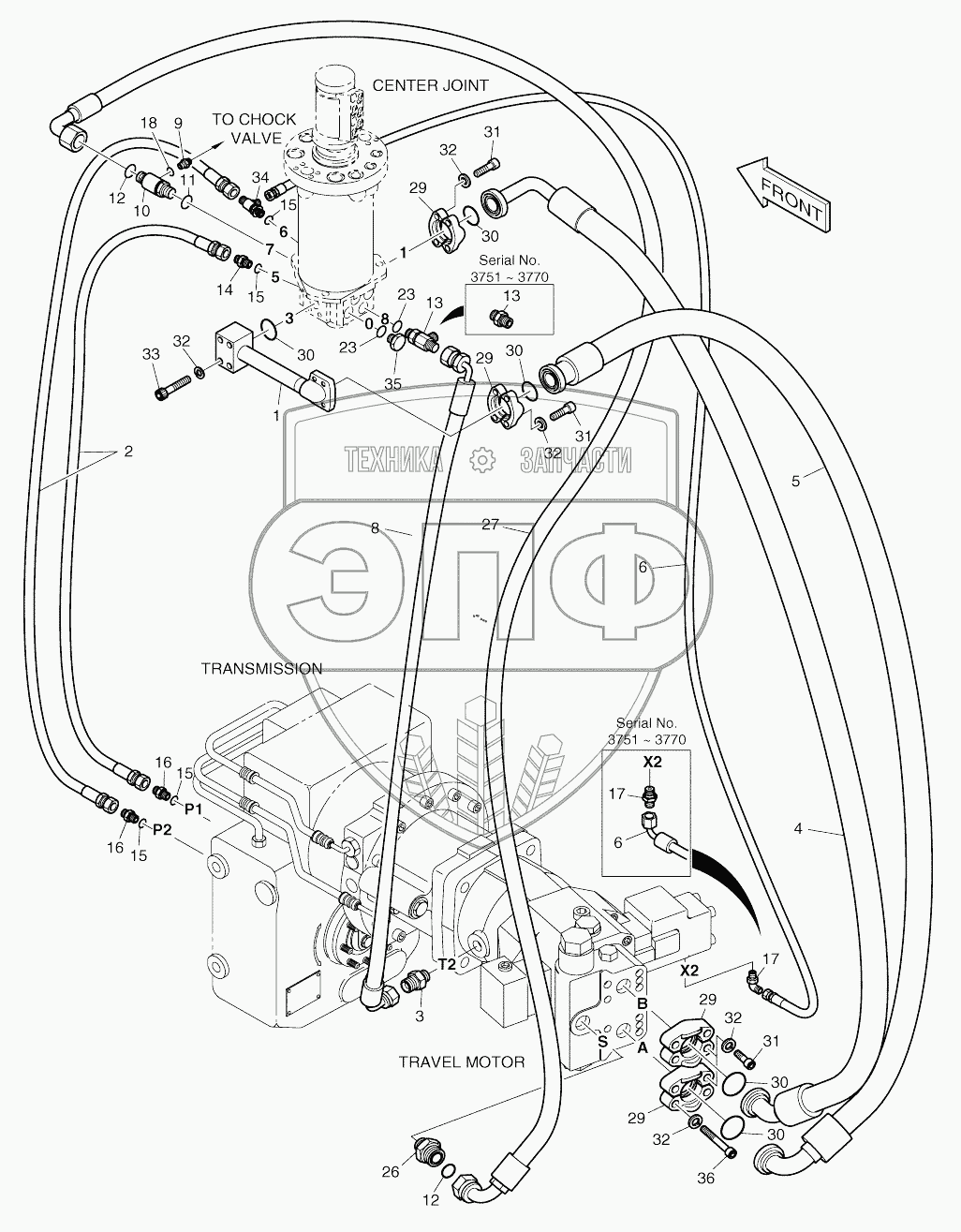Каталог запасных частей к технике: Doosan SOLAR 140W-V. PROPELLING PIPING (3751 -)