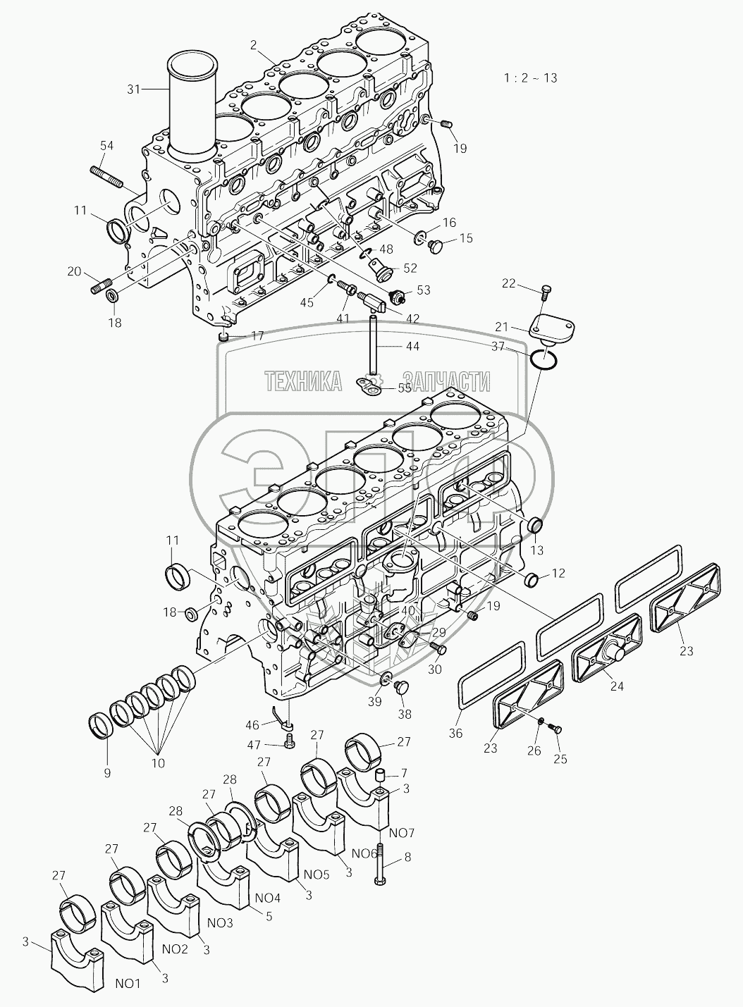 Каталог запасных частей к технике: Doosan SOLAR 140W-V & S160W-V. CYLINDER BLOCK