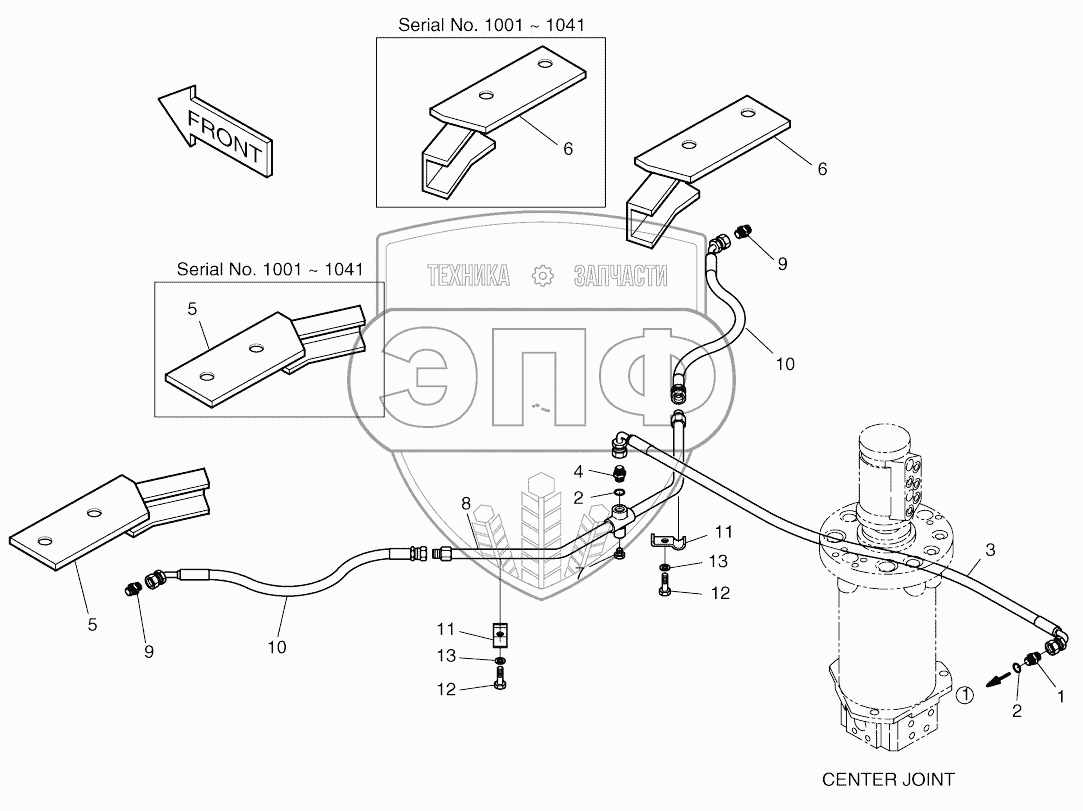 Каталог запасных частей к технике: Doosan SOLAR 170W-V. BRAKE PIPING (1)-FRONT