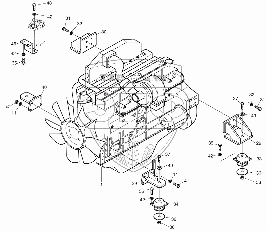Каталог запасных частей к технике: Doosan SOLAR 170W-V. ENGINE MOUNTING