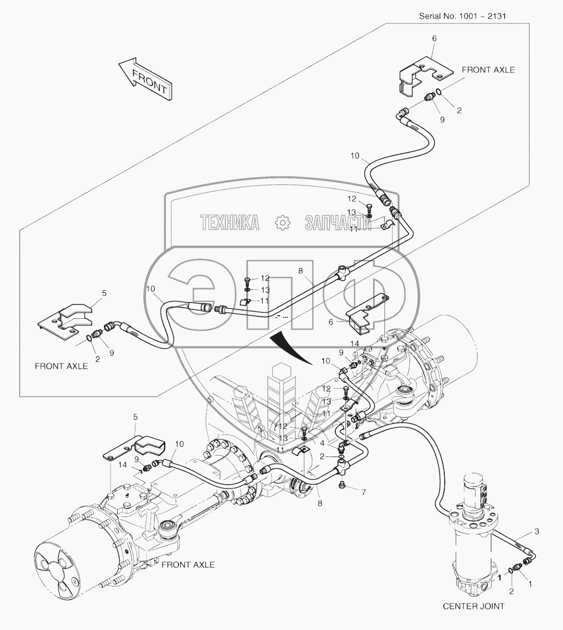 Каталог запасных частей к технике: Doosan SOLAR 210W-V. BRAKE PIPING (1)-FRONT