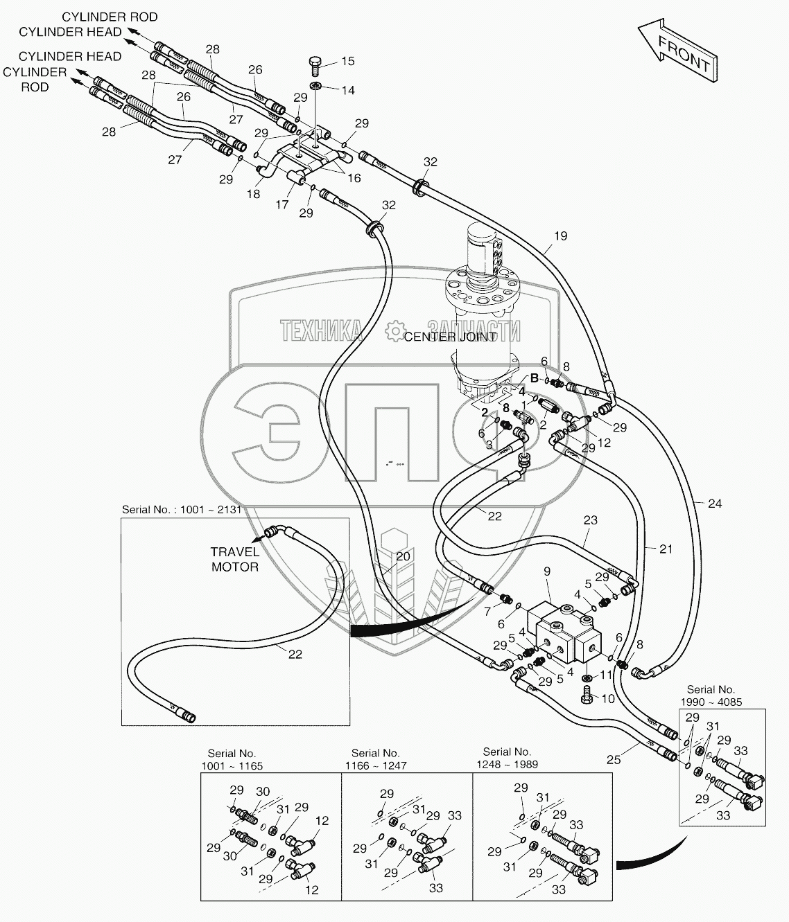Каталог запасных частей к технике: Doosan SOLAR 210W-V. DOZER AND OUTRIGGER PIPING