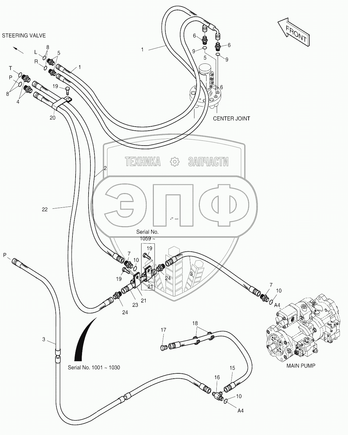 Каталог запасных частей к технике: Doosan SOLAR 210W-V. STEERING PIPING