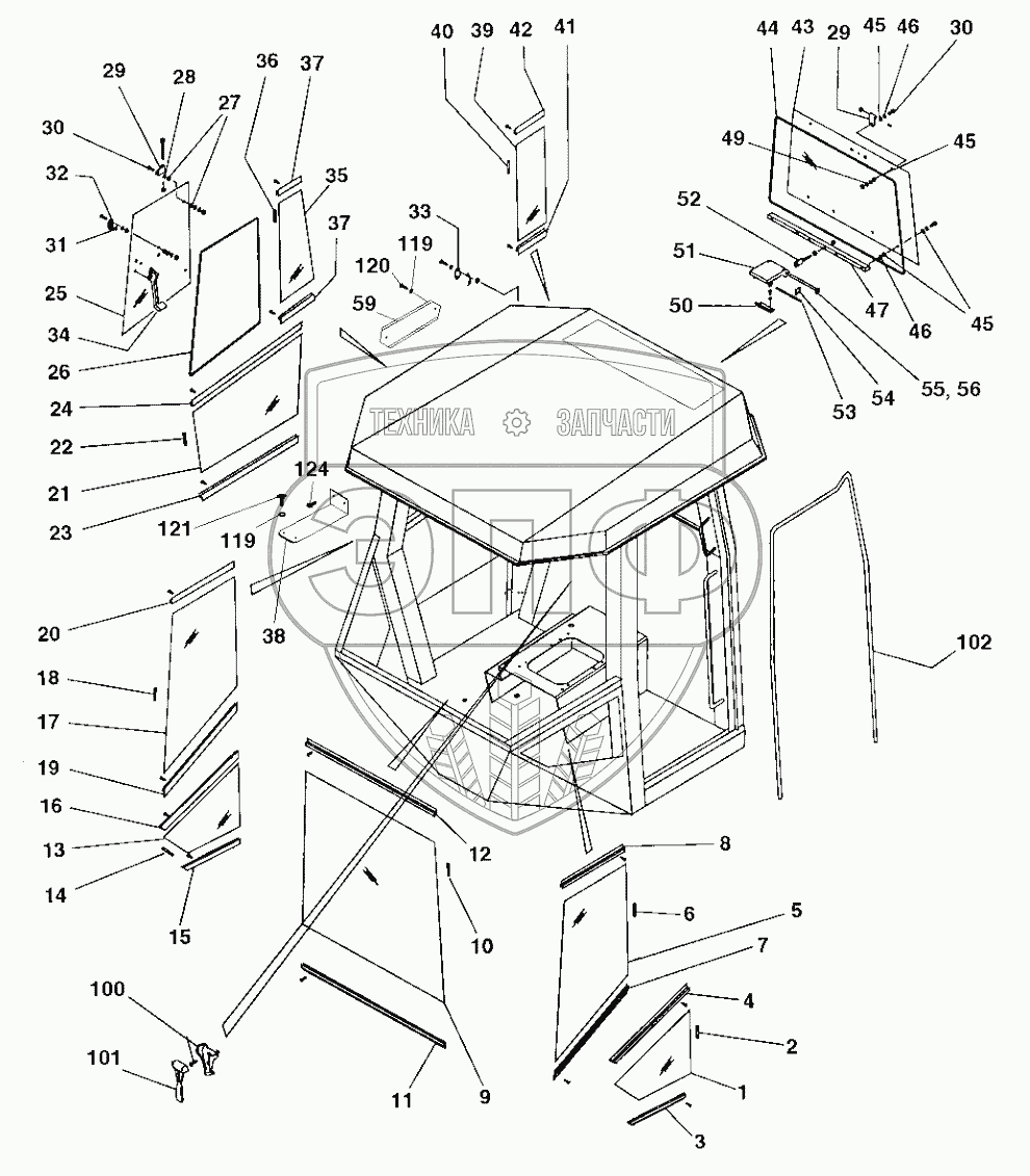 Каталог запасных частей к технике: DYNAPAC CA250D. Cab Screens