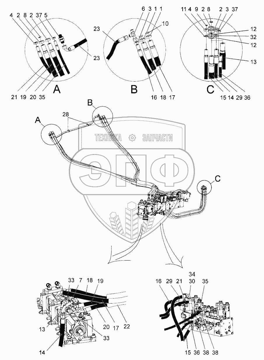 Каталог запасных частей к технике: DYNAPAC CC2200. Hydraulic system, frame