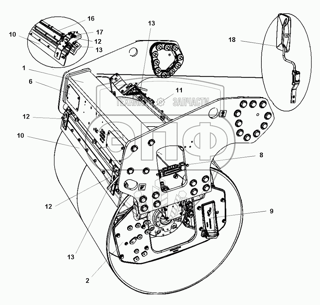 Каталог запасных частей к технике: DYNAPAC CC2300C. End frame, front