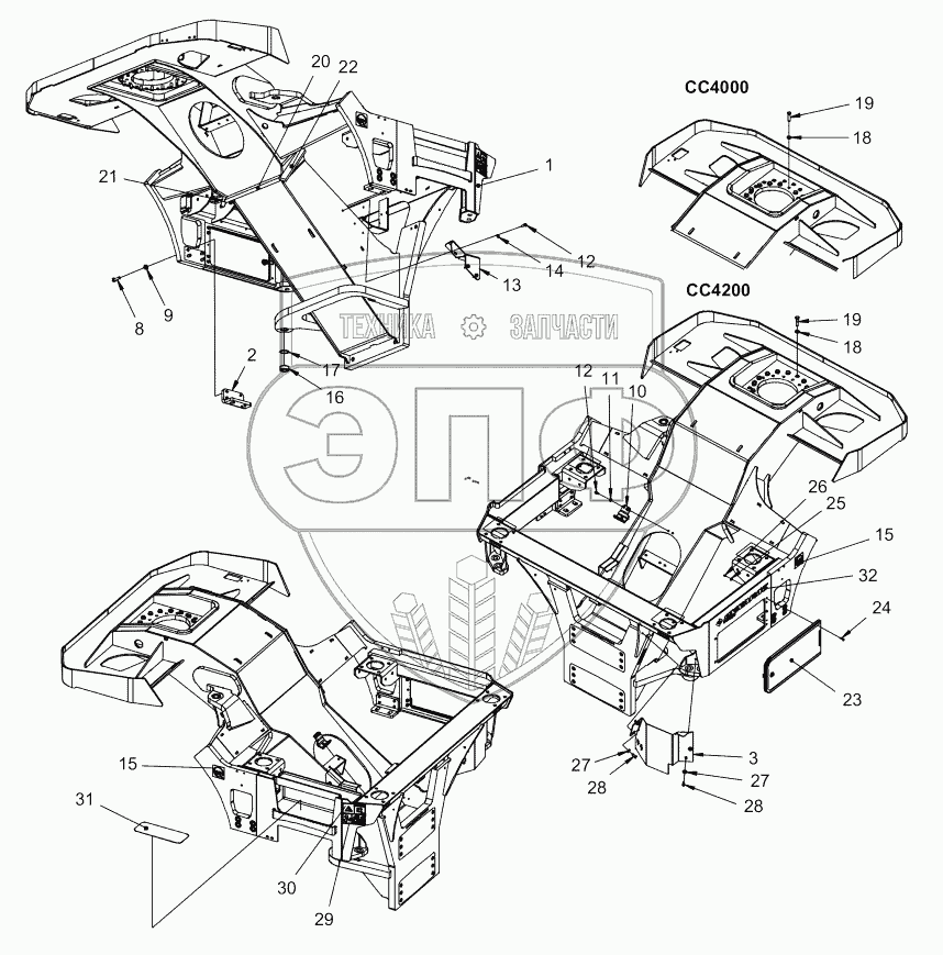 Каталог запасных частей к технике: DYNAPAC CC4000 VI. Front frame module