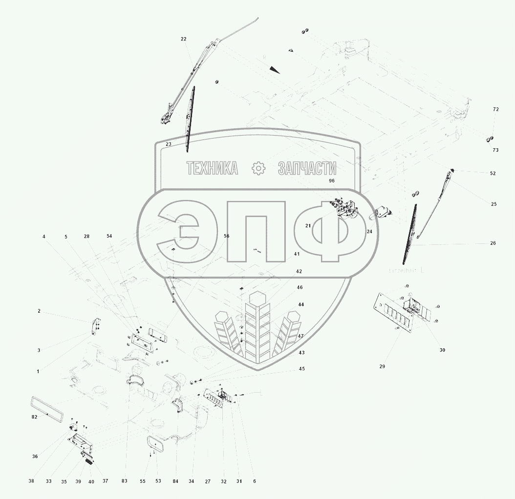 Каталог запасных частей к технике: DYNAPAC CG2300. Wipers front/rear and front ceiling