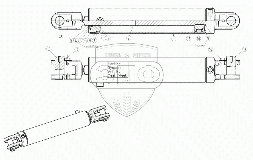 Каталог запасных частей к технике: DYNAPAC Dynapac CA1500. 4812121948 Hydraulic cylinder