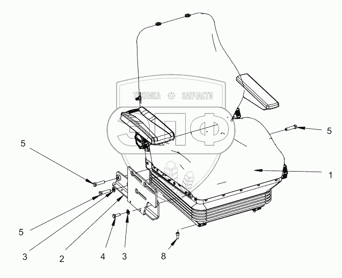 Каталог запасных частей к технике: DYNAPAC Dynapac CA1500. Seat, fabric suspensioned