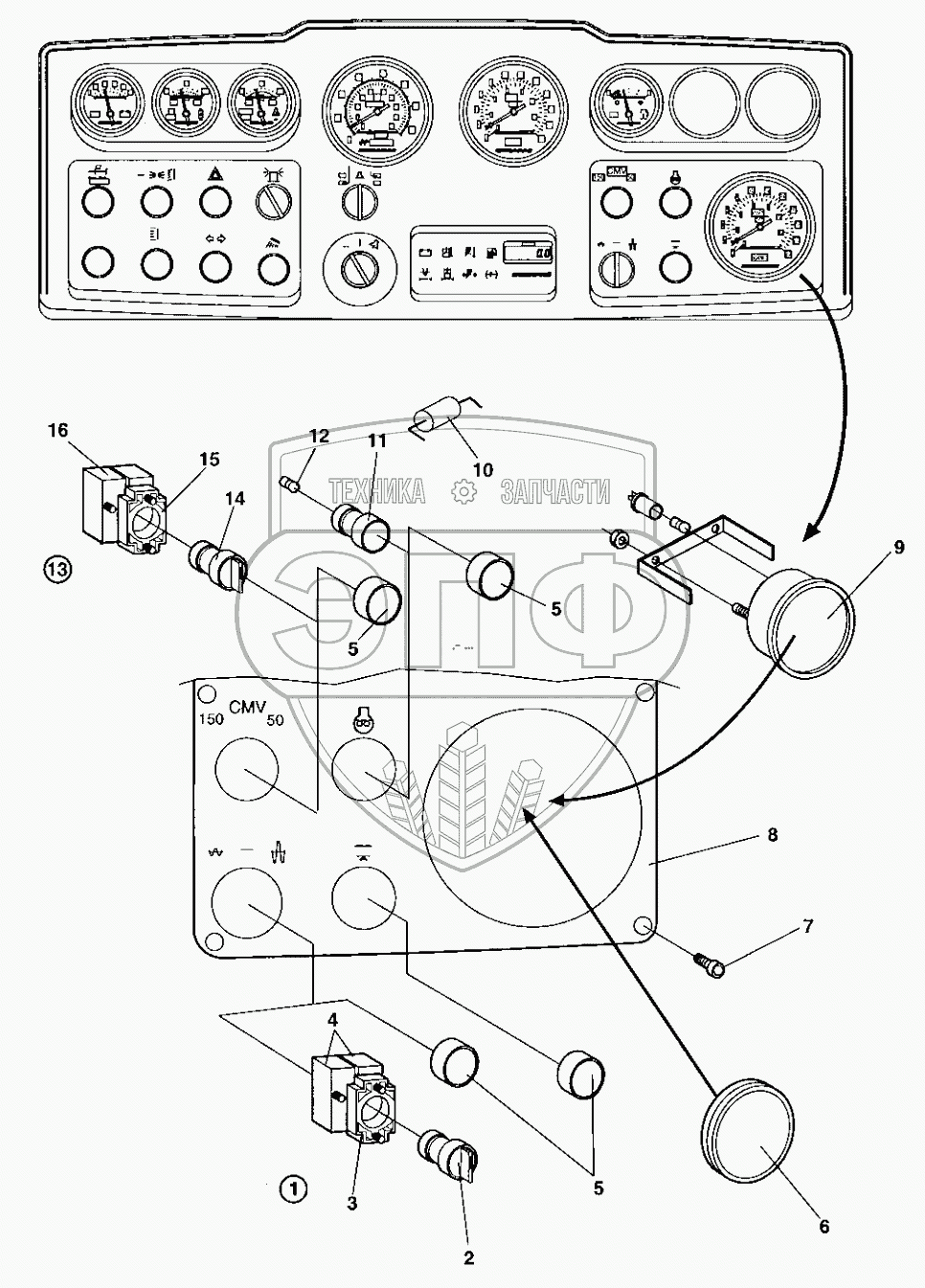 Каталог запасных частей к технике: DYNAPAC Dynapac CA302D. Instrument panel Lower right 17764