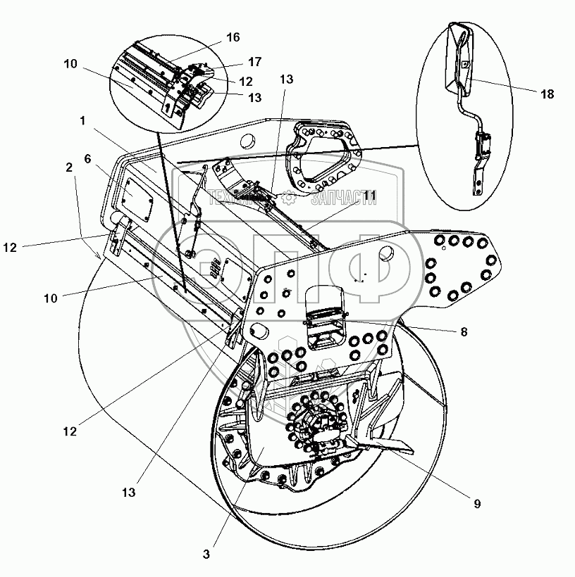 Каталог запасных частей к технике: DYNAPAC Dynapac CC2200C. End frame, front