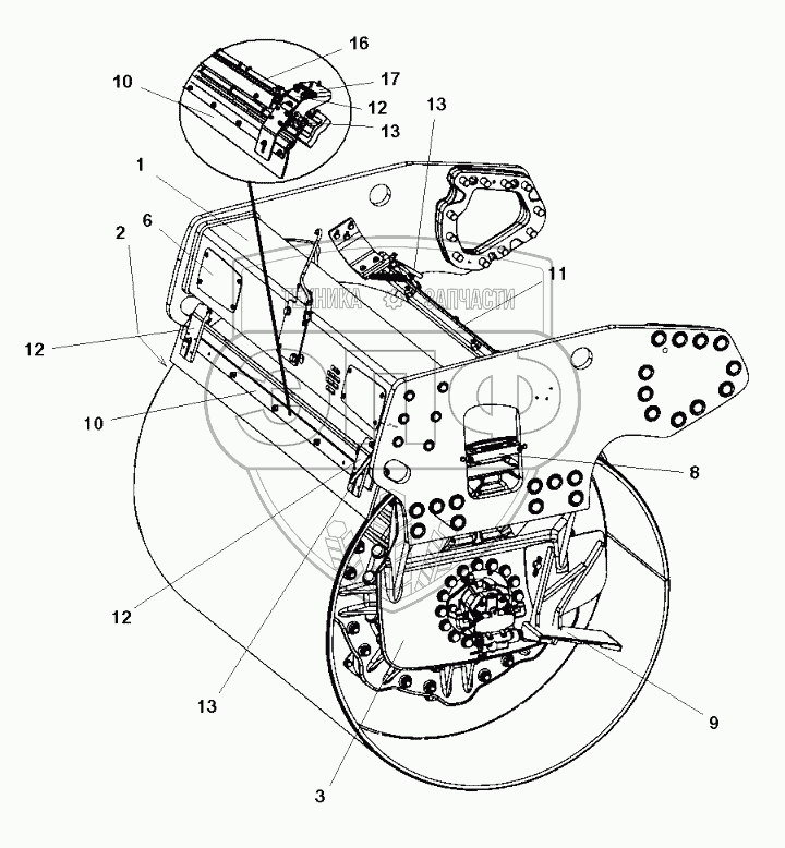 Каталог запасных частей к технике: DYNAPAC Dynapac CC224HF. End frame, front CC224100100010