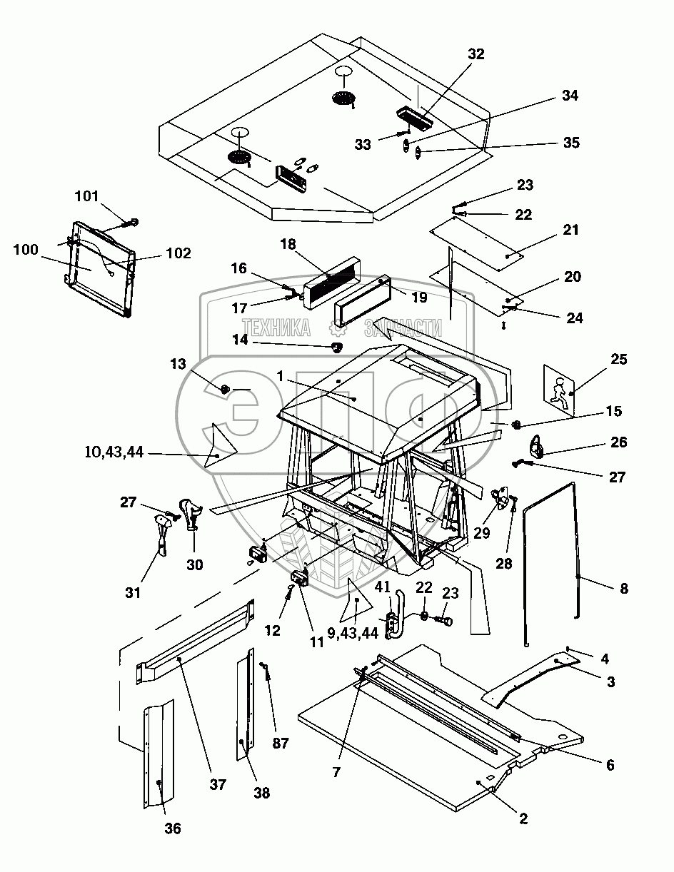 Каталог запасных частей к технике: DYNAPAC Dynapac CC322. Cab Interior