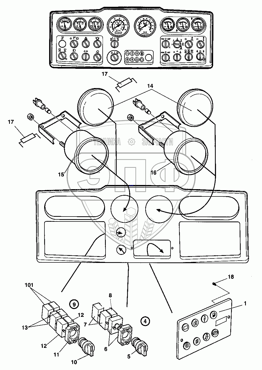 Каталог запасных частей к технике: DYNAPAC Dynapac CC322. Instrument panel, main
