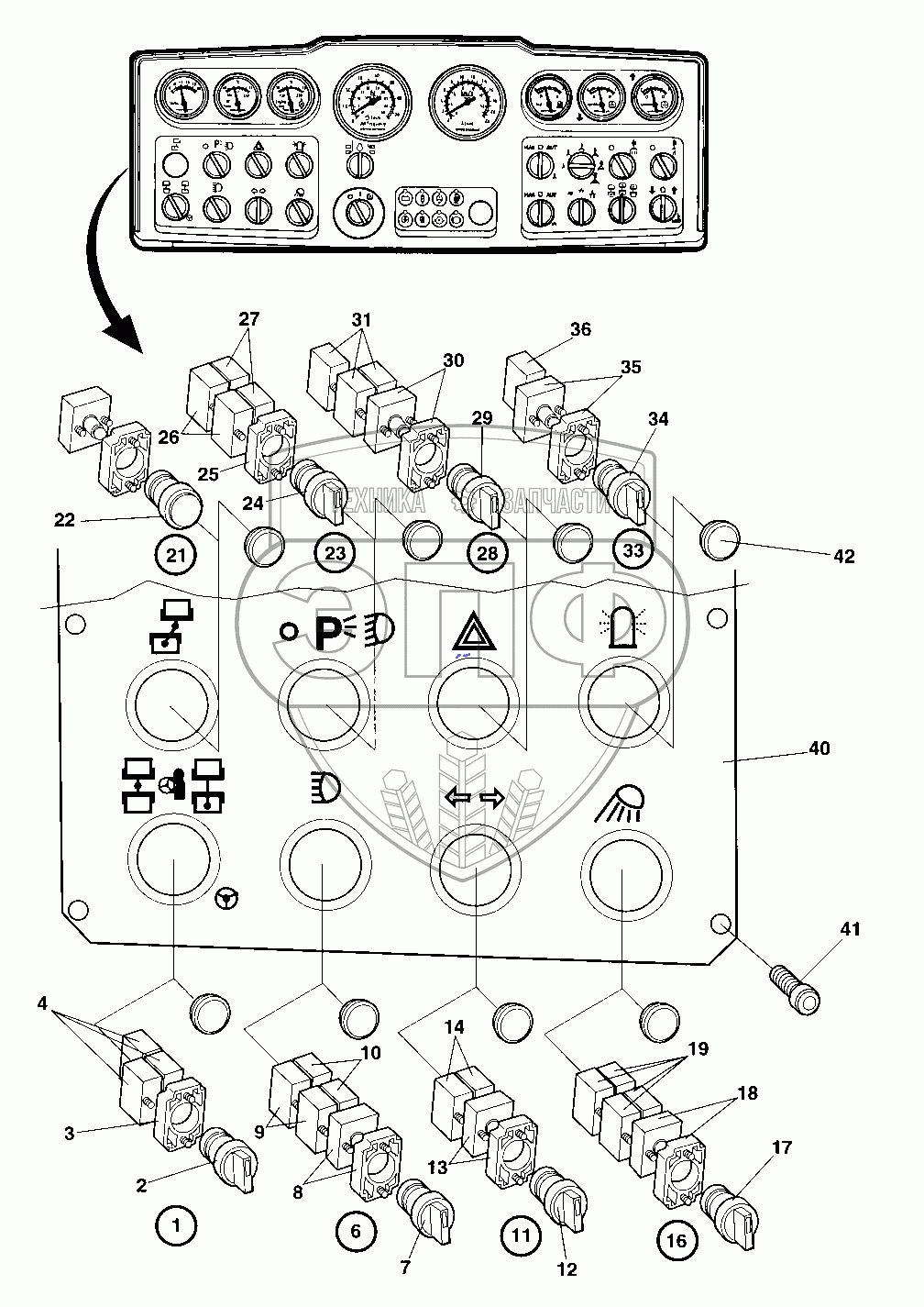 Каталог запасных частей к технике: DYNAPAC Dynapac CC322. Instrument panel Lower left