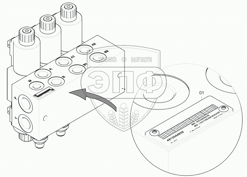 Каталог запасных частей к технике: DYNAPAC Dynapac F1200C/CS. 4812008674 Valve block