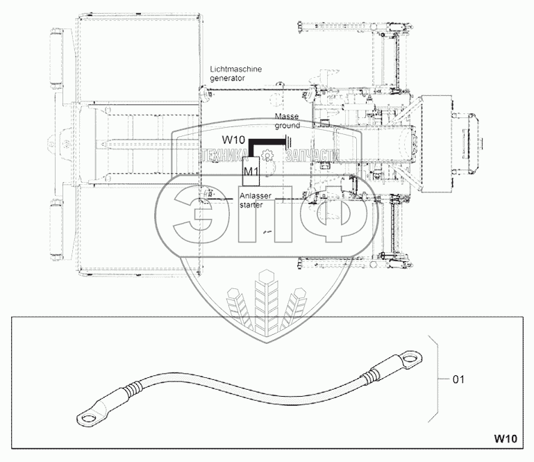Каталог запасных частей к технике: DYNAPAC Dynapac F1200CS/CS. 4812047528 Cable W10