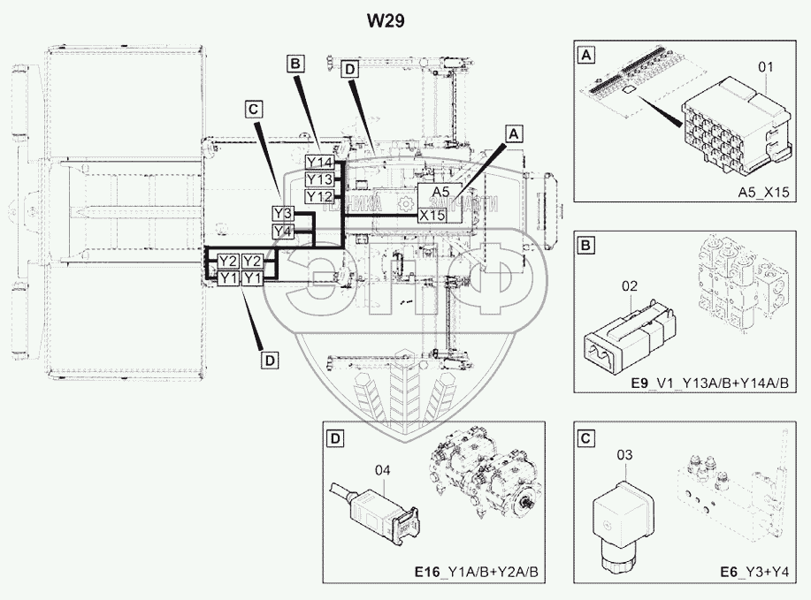 Каталог запасных частей к технике: DYNAPAC Dynapac F1200CS/CS. 4812047541 Cable W29