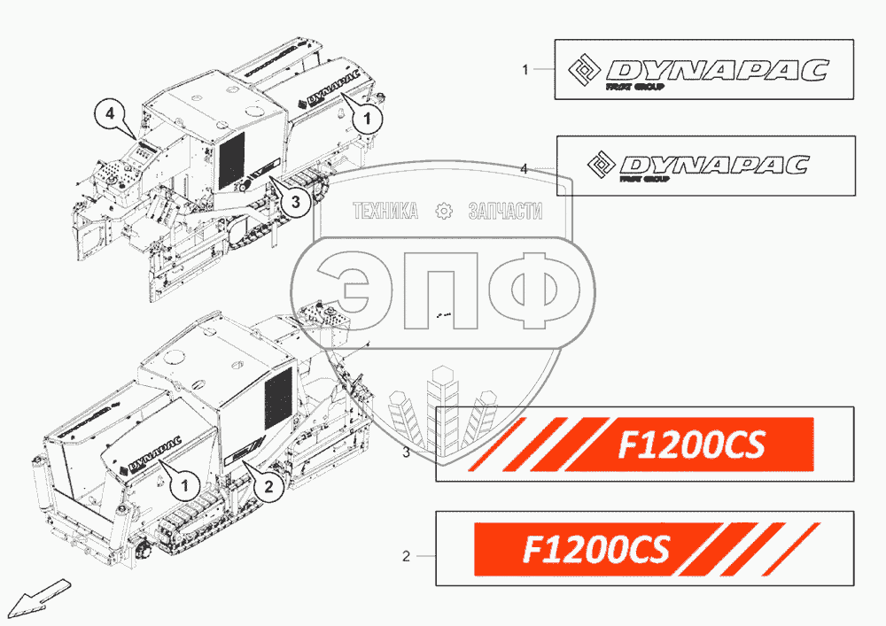 Каталог запасных частей к технике: DYNAPAC Dynapac F1200CS/CS. 4812202982 Labeling