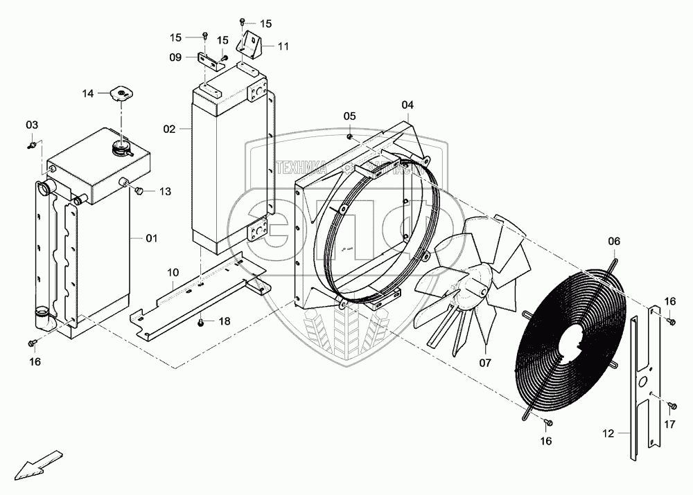 Каталог запасных частей к технике: DYNAPAC Dynapac F1200CS/CS. Water oil cooler
