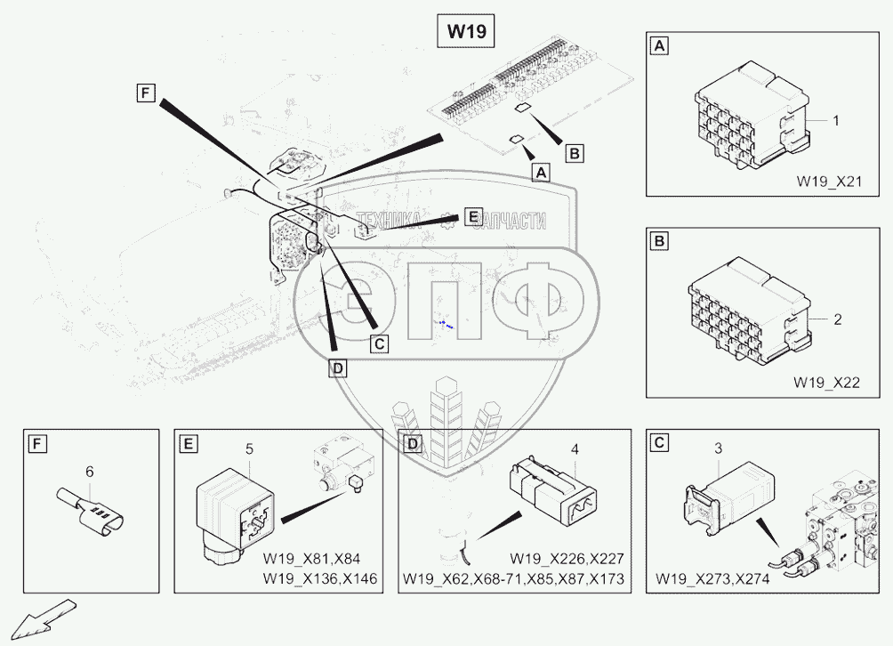Каталог запасных частей к технике: DYNAPAC F2500C. 4812009075 Cable harness W19
