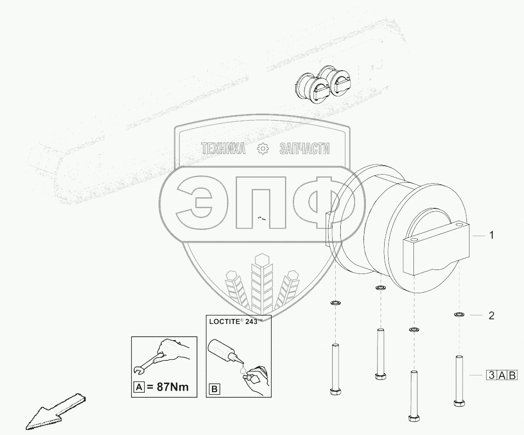 Каталог запасных частей к технике: DYNAPAC SD2550CS. Track roller, cpl.