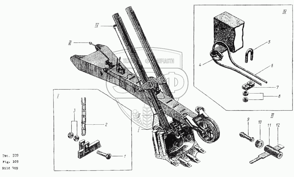 Каталог запасных частей к технике: ЭКСКО ЭО-5111Б. Механизм открывания днища ковша