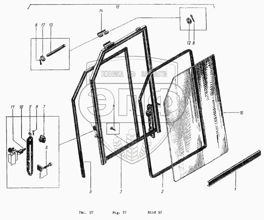 Каталог запасных частей к технике: ЭКСКО ЭО-5111Б. Окно переднее