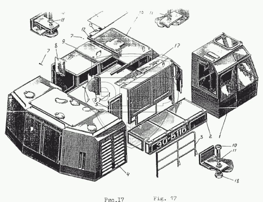 Каталог запасных частей к технике: ЭКСКО ЭО-5116. Кабина Э0-5116-1500-0