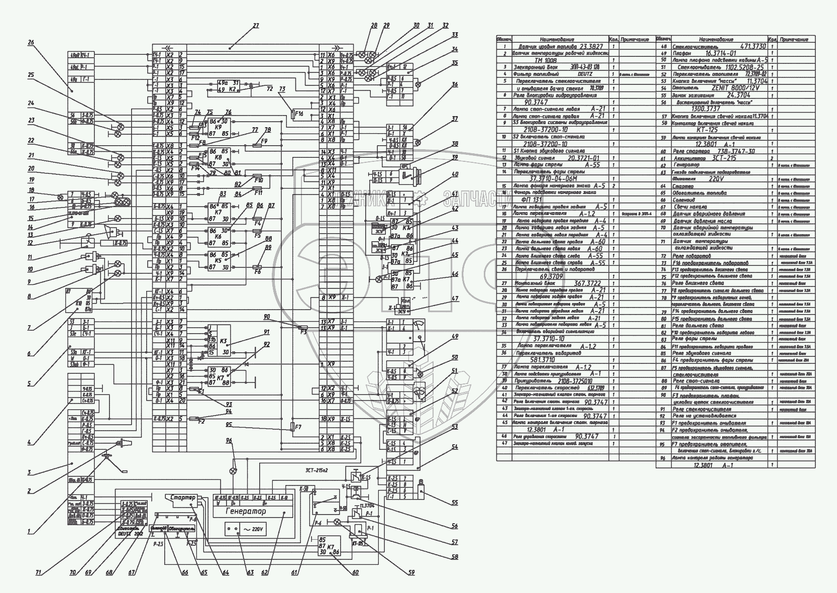 Каталог запасных частей к технике: ЭКСМАШ E160W. Электрическая принципиальная схема экскаватора E160W