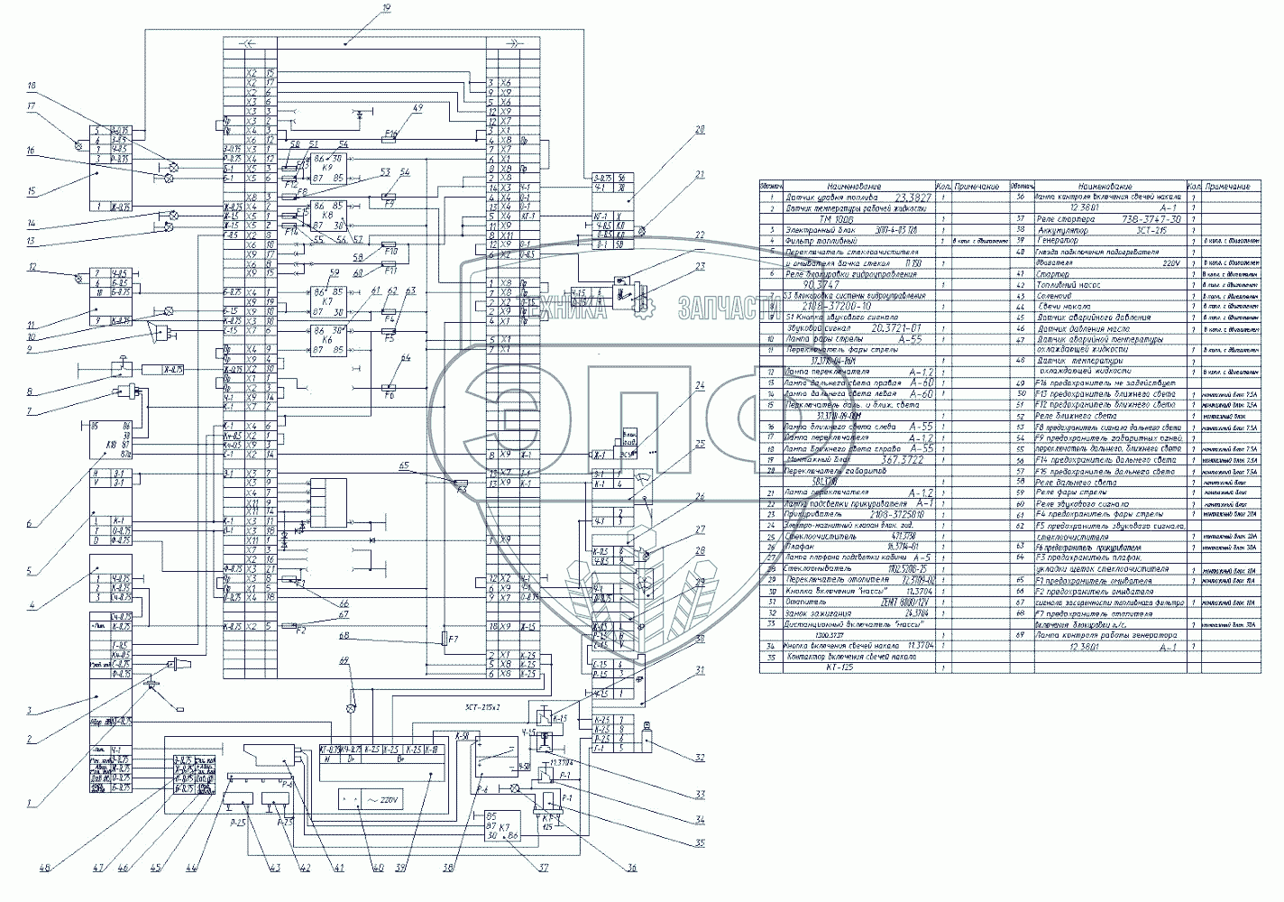 Каталог запасных частей к технике: ЭКСМАШ E180R. Электрическая принципиальная схема экскаватора E180R