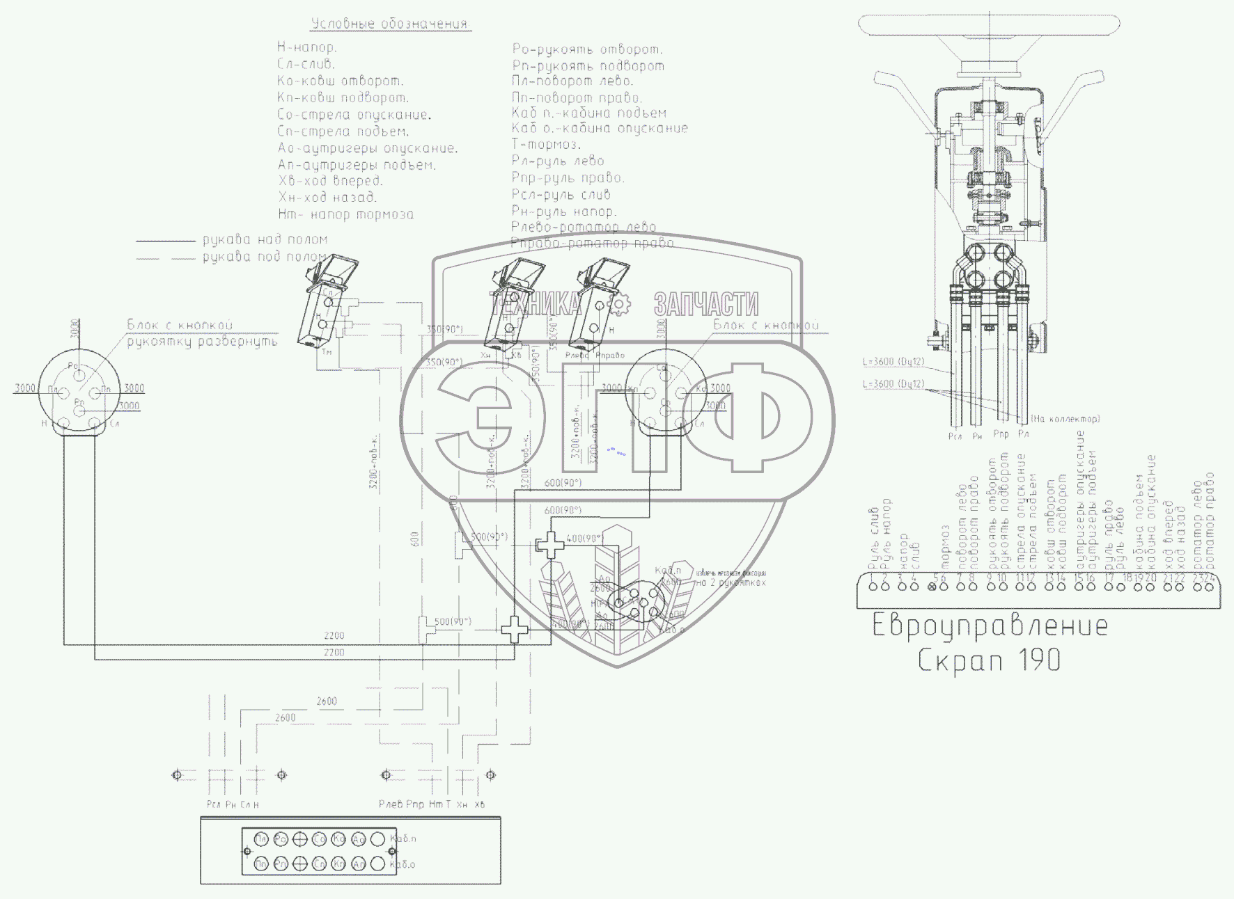 Каталог запасных частей к технике: ЭКСМАШ E190WH. Гидроуправление в кабине экскаватора