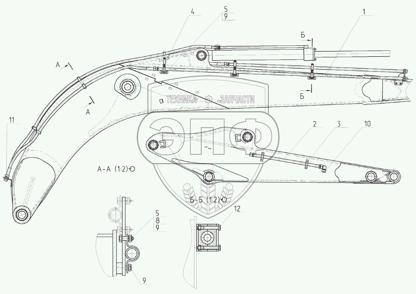 Каталог запасных частей к технике: ЭКСМАШ E240C. Трубопроводы гидромолота на рабочем оборудовании