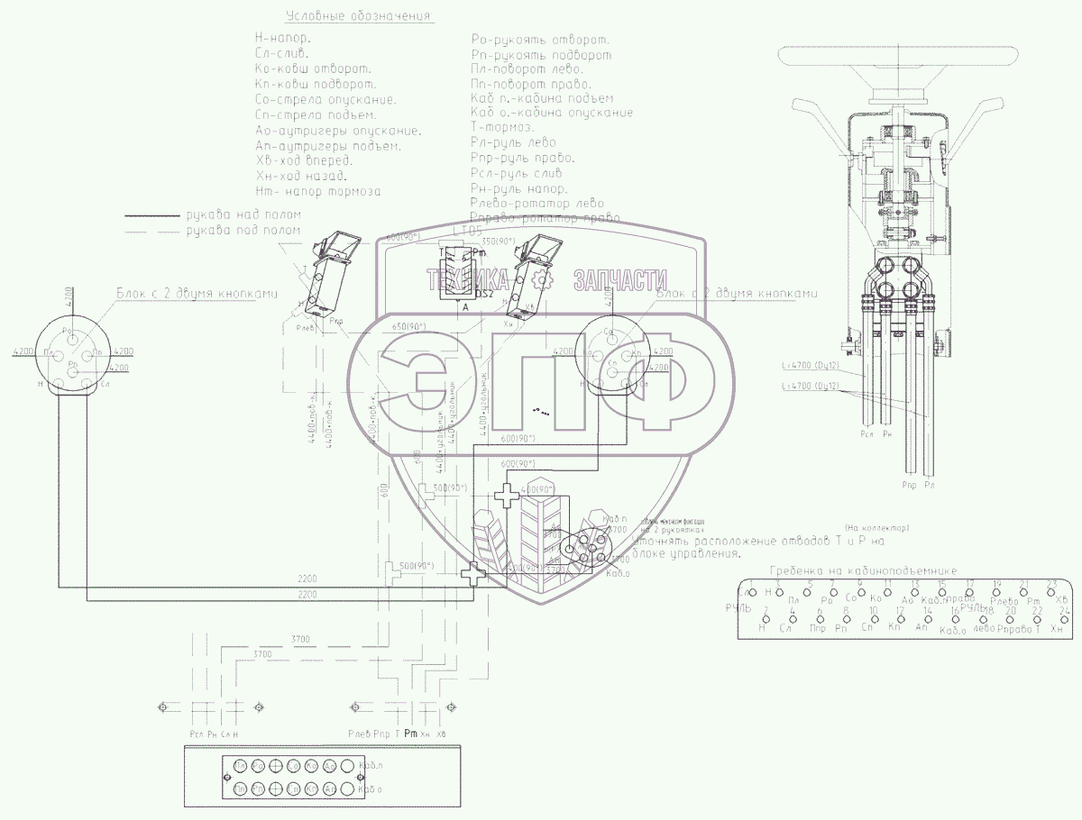 Каталог запасных частей к технике: ЭКСМАШ E280WH. Гидроуправление в кабине экскаватора